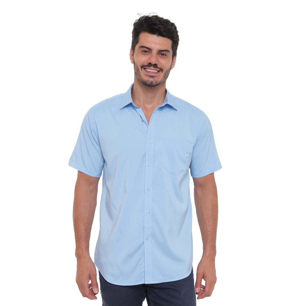 Camisa Social Slim Fit Masculina Manga Curta Lisa Com Bolso
