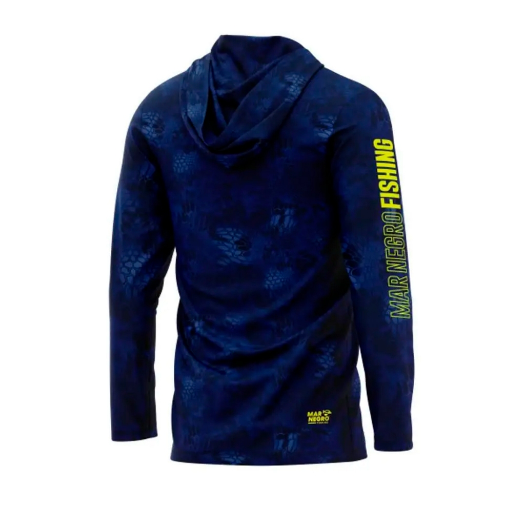Camisa Sublimada Proteção Solar UV Preto Blue Com Capuz - Mar Negro