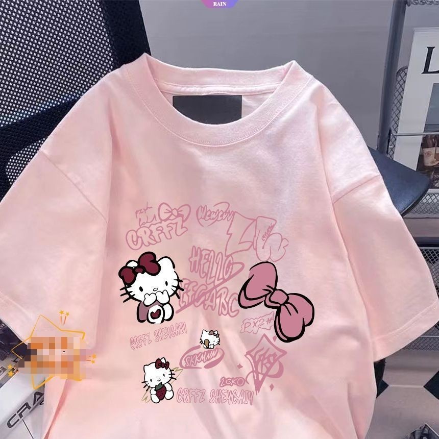 Camisa Summer Ins New Sanrio HelloKit De Verão Camiseta De Manga Curta Versão Coreana Feminina De Meia