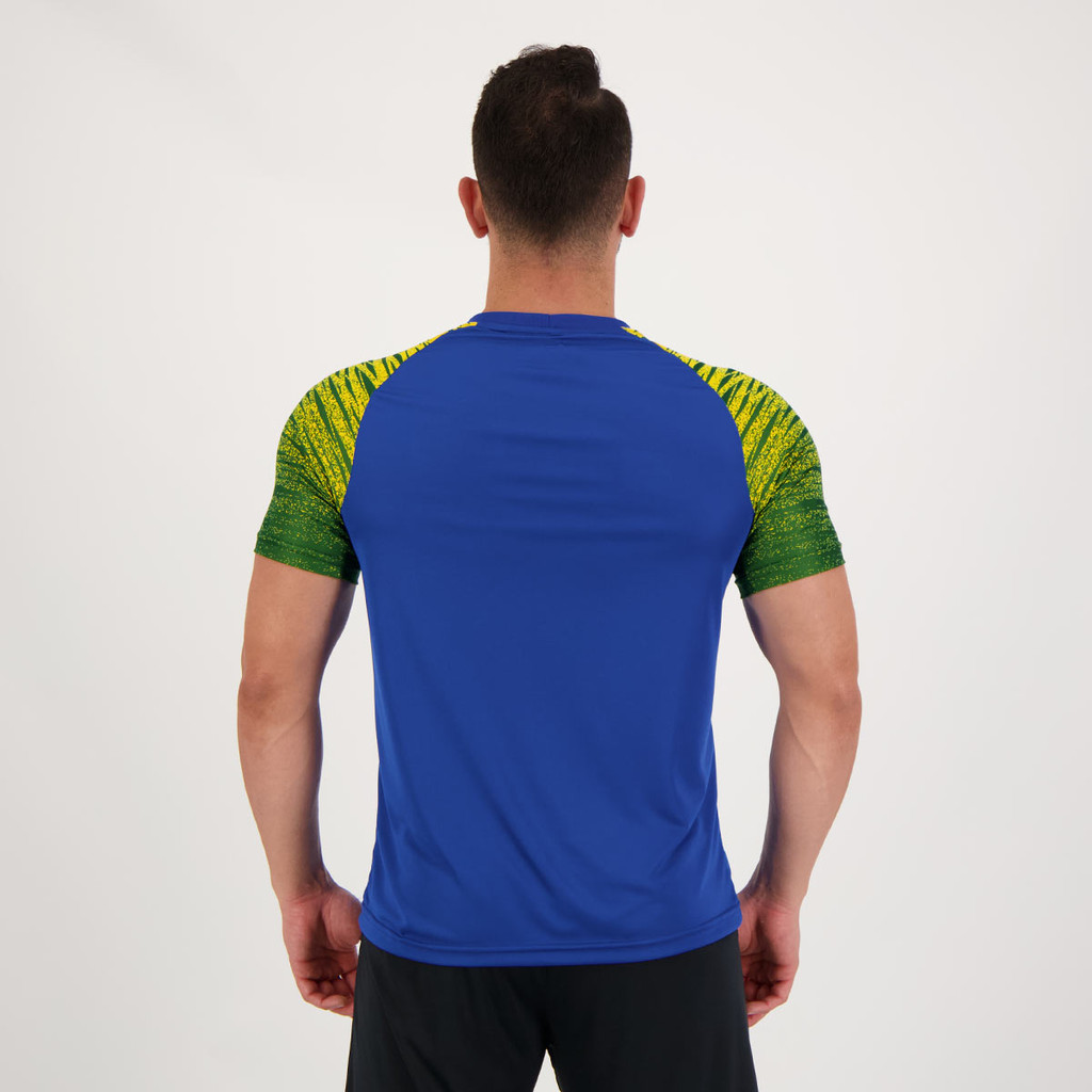Cor predominante: AzulIndicada para: CasualComposição: PoliésterOrigem: NacionalGênero: MasculinoSeleção: BrasilEscudo: VinilManga: CurtaGola: CarecaDimensões aproximadas (A x L):P: 66 x 48 cmM: 69 x 52 cmG: 71 x 54 cmGG: 74 x 57 cmEG: 76 x 59 cm