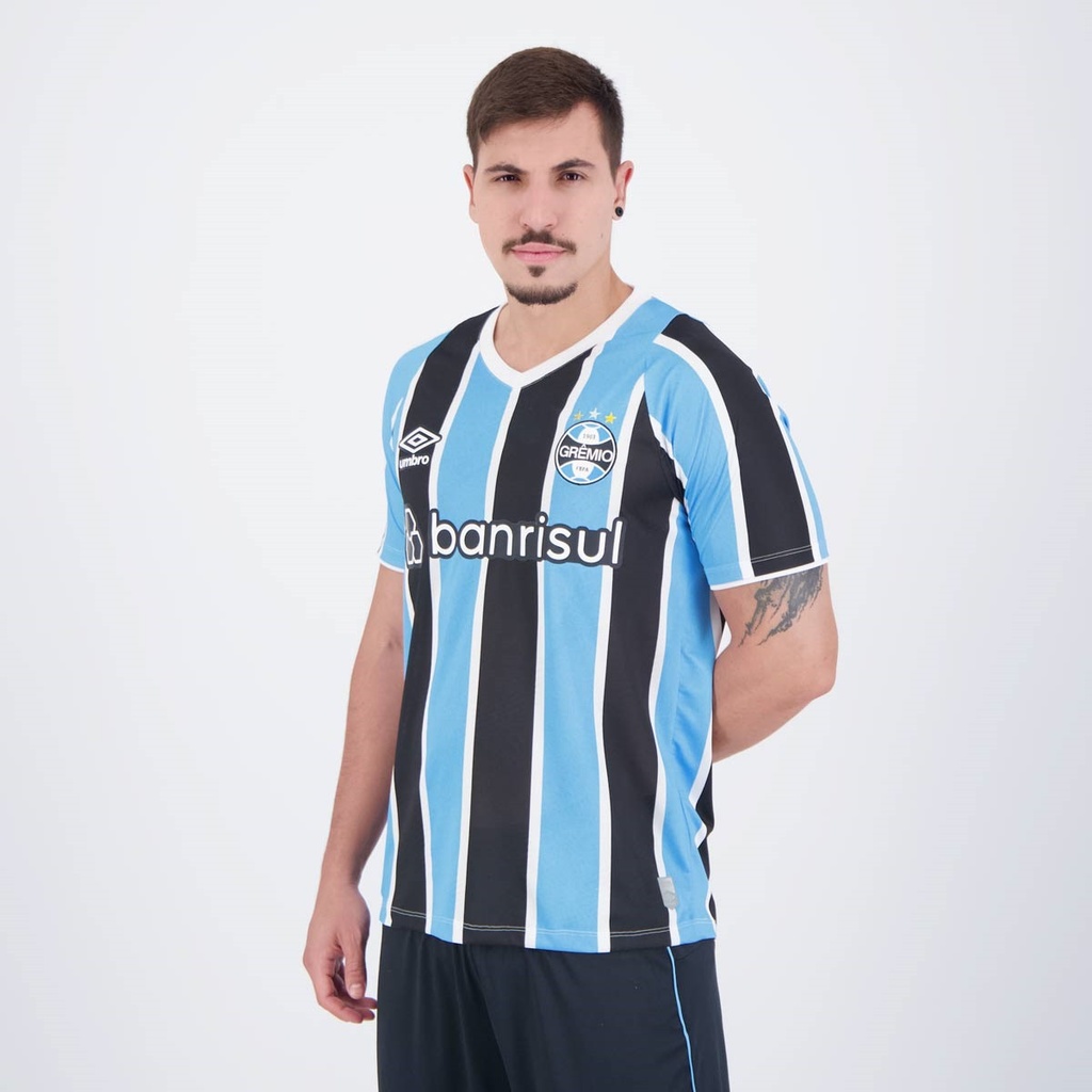 Composição: 100% PoliésterCor predominante: AzulIndicada para: JogoEscudo: BordadoOrigem: NacionalClube: GrêmioManga: CurtaGola: VDimensões aproximadas (A x L):P: 74 x 50 cmM: 76 x 52 cmG: 77 x 56 cmGG (2G): 80 x 62 cmEG (3G/2GG): 81 x 65 cmEEG (4G/3GG): 82 x 68 cmEEEG: (5G/4GG): 83 x 72 cm