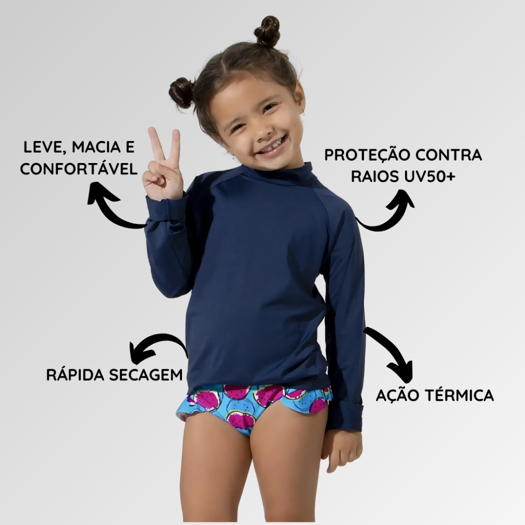 Camisa UV Infantil Térmica Blusa de Proteção Solar para Menino e Menina UV50