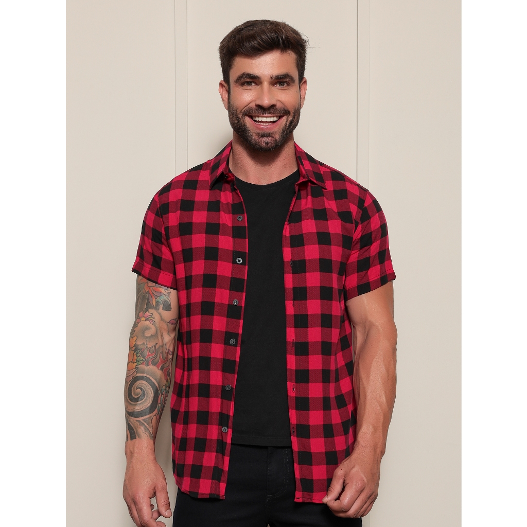 Camisa Manga curta Xadrez ATENÇÃO!!!! Tamanho : P - M - G - GG *** Modelo usando tamanho M Cores: - Vermelho - Azul - Amarelo - Verde - Pink - Branco Produto Importado Em Alta Qualidade, Tecido Fresquinho Super Confortável. Composição: 100% Viscose Forma Normal, Recomendamos pedir o tamanho que você usa normalmente. Guia De Tamanhos: P: Comp. 66 / Manga 23 / Cintura 51 M: Comp. 66 / Manga 23 / Cintura 53 G: Comp. 80 / Manga 24 / Cintura 55 GG: Comp. 81 / Manga 26 / Cintura 56 As peças foram medidas abotoadas e de frente