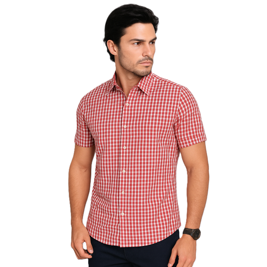 Camisa Xadrez Masculina Social Manga Curta Não Amassa Agro Festa Junina