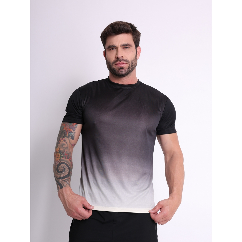 Camisas Camisetas Dry-Fitness Manga Curta Dgrade Masculina Casual-Treino-Academia-Esportes