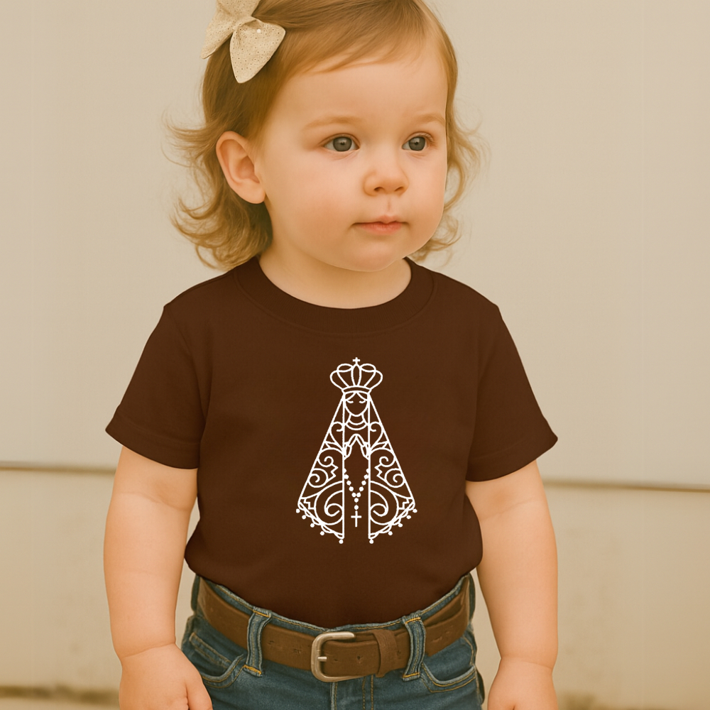 Camiseta 100%Algodão Feminina Country Estampa Nossa Senhora Aparecida Minimalista Fine Line Católica