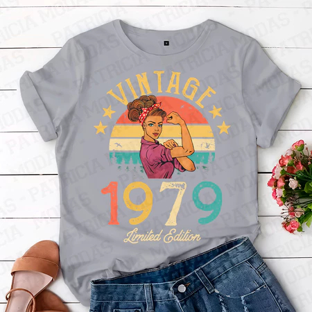 Camiseta Algodão 1979-Mulher T-shirt Básica Confortável Estampa Estilo Retrô personalizado