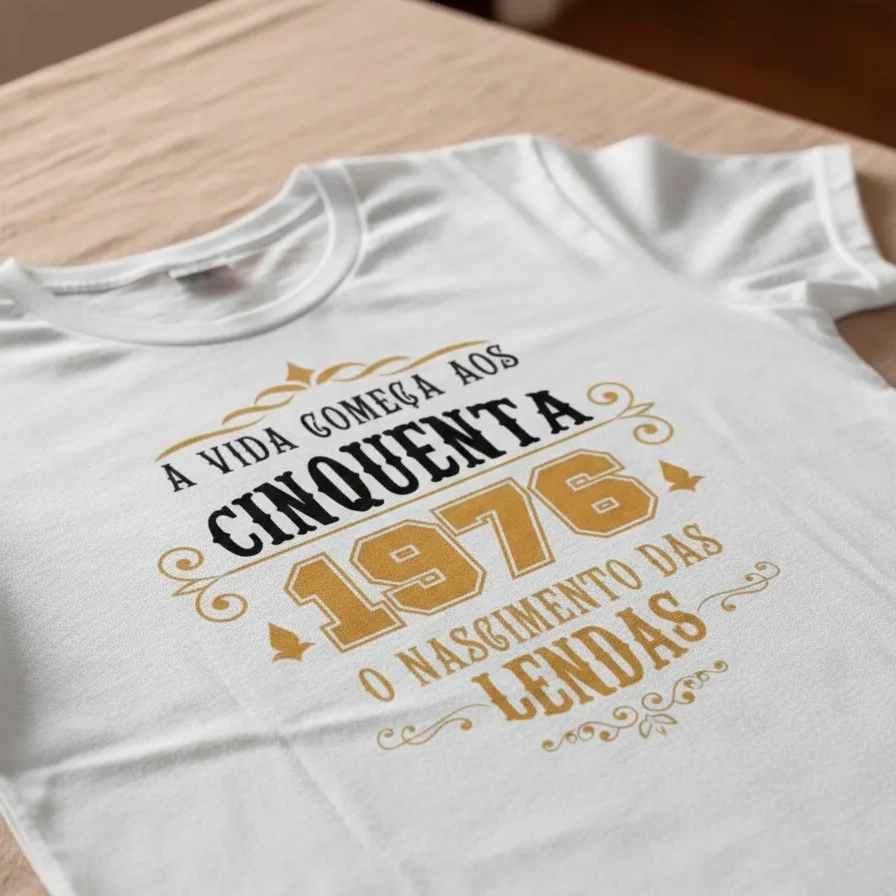 Camiseta Algodão Feminina Nascimento Lendas 1976 50 anos Aniversário Data