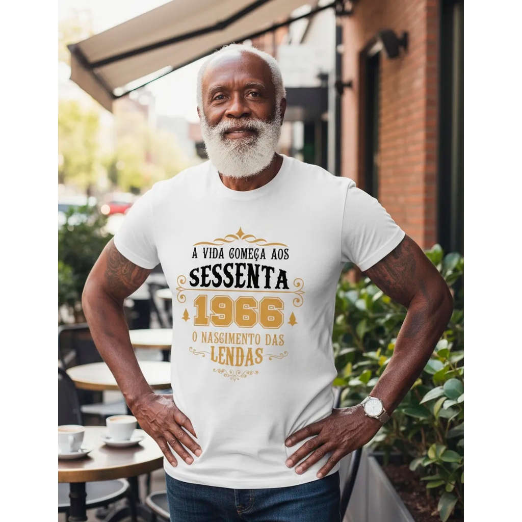 Camiseta Algodão Masculina Nascimento Lendas 1966 60 anos Aniversário Data