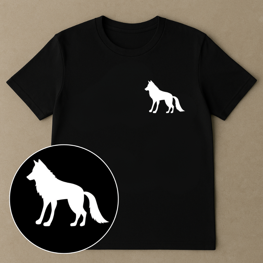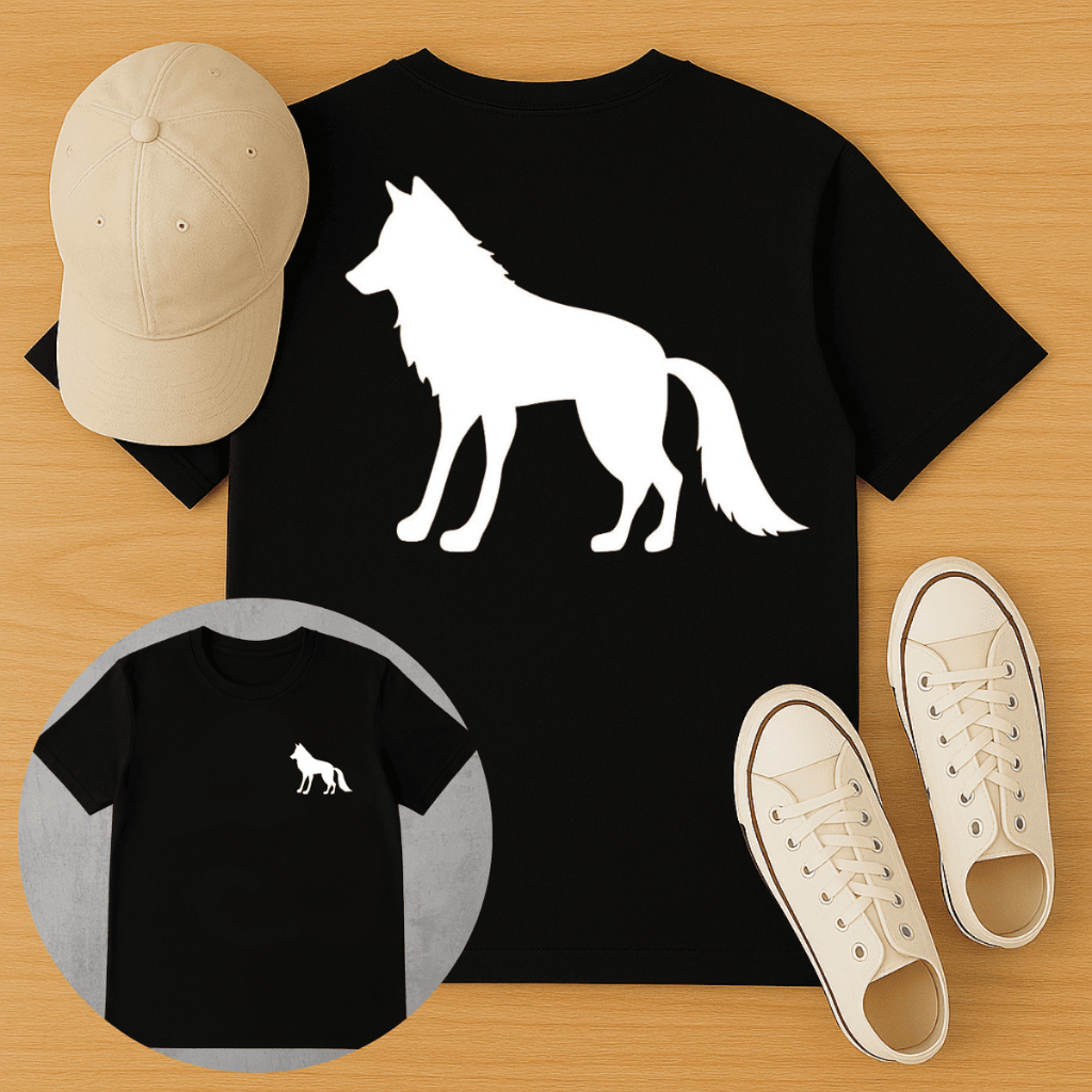 Camiseta Algodão Masculina Preta Estampa Lobo Frente e Costas – Moda Streetwear Casual