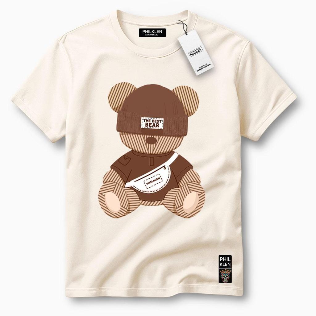 Camiseta Algodão Premium Estampa Urso Gorro Unissex Masculina e Feminina Philklen