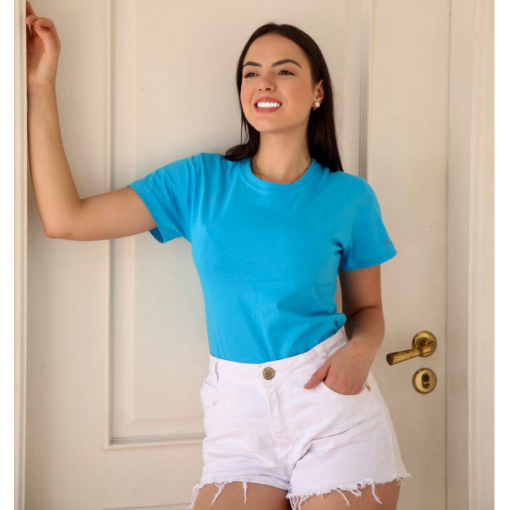 Camiseta Baby Look Básica Lisa 100% Algodão Fio penteado 30.1 Detalhes: >Tecido macio e de qualidade >Corte cinturado, manga mais curta >Gola redonda com costura dupla >Costura reforçado nos Ombros >100%Algodão Fio penteado 30.1 OBS: Corte menor que o habitual, caso fique na dúvida, selecione um tamanho maior. Não é transparente Dimensões: P: Altura: 53cm Largura: 36cm M: Altura: 60cm Largura: 40cm G: Altura: 62cm Largura: 43cm GG: Altura: 66cm Largura: 50cm XG: Altura: 67cm Largura: 52cm CORES Disponível: Amarelo Ouro, Azul Marinho, Azul Royal, Azul Turquesa, Branco, Preto, Rosa Pink, Vermelho consulte-nos para mais Informações. Enviamos para todo o brasil