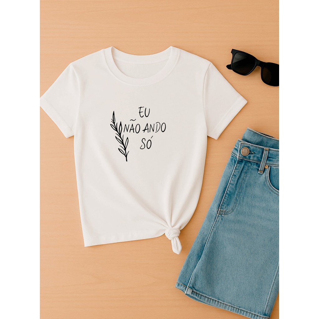 Camiseta Babylook Tshirt Feminina Eu Não Ando Só Frases Religiosas Personalizada 100% Algodão Várias Cores