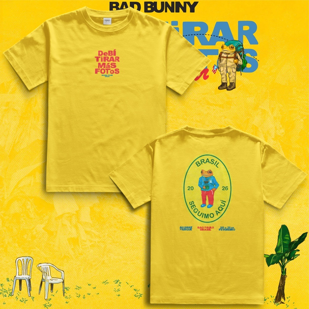 | Camiseta Bad Bunny | Debí Tirar Mas Fotos | DTMF World Tour | Sapo ... este produto | R$ 34,90 | — | 4.8/5 | — |