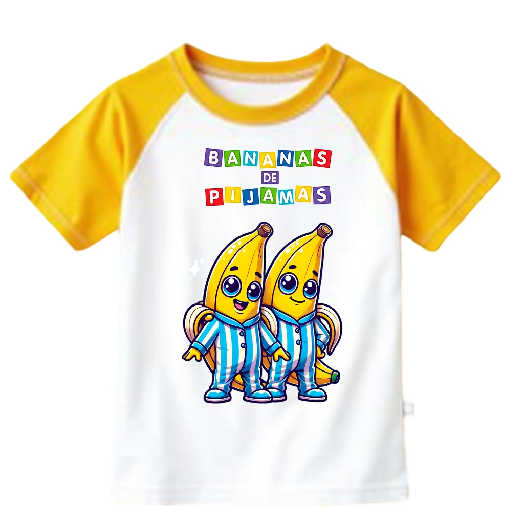 Camiseta Bananas de Pijamas Branco e Amarelo Fantasia Curta 4 ao 12