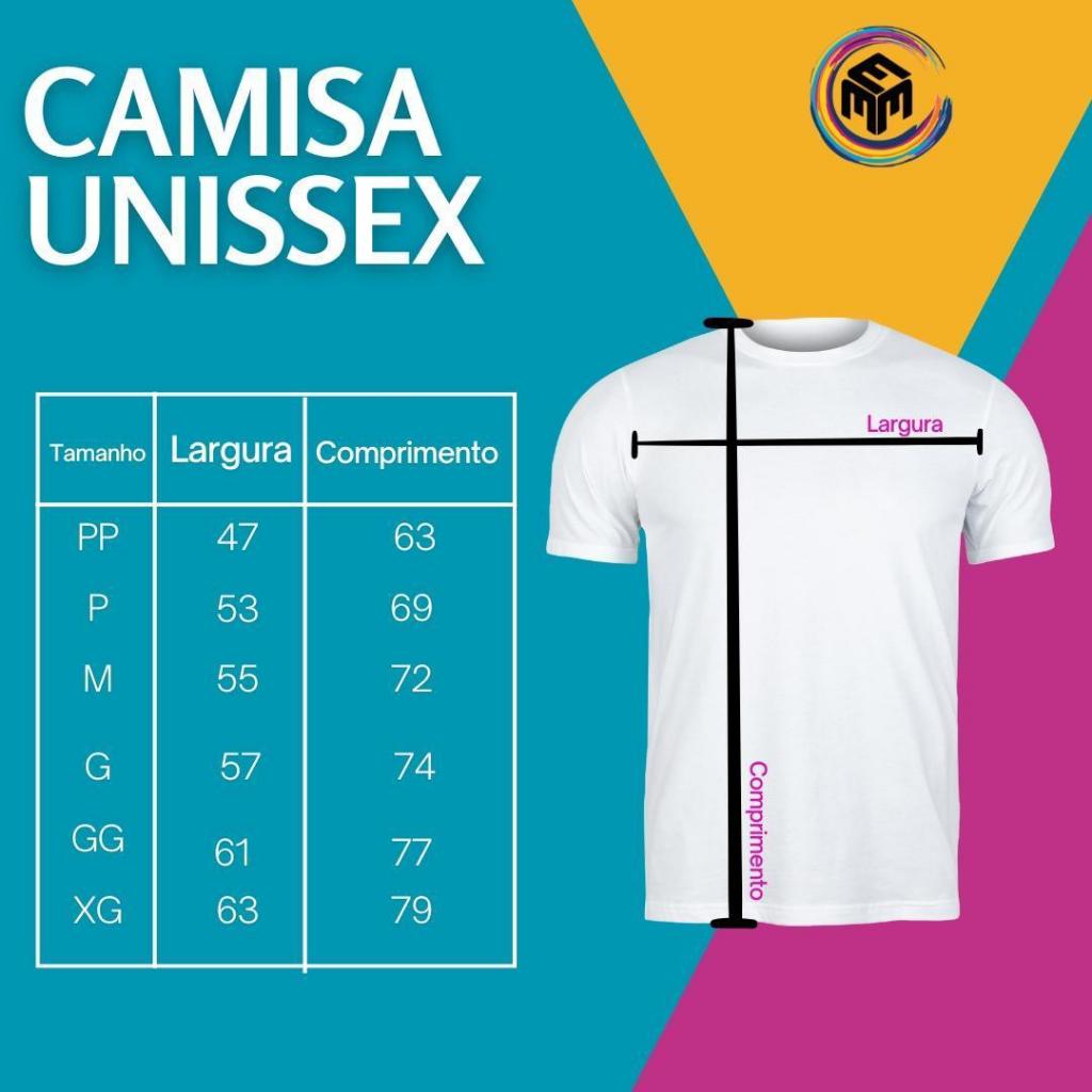 Características do Produto Fabricada em 100% algodão, a camiseta oferece excelente durabilidade e resistência, mantendo o visual impecável mesmo após diversas lavagens. O tecido é leve, antialérgico e com ótimo caimento, proporcionando liberdade de movimento. As estampas são feitas em alta definição, utilizando tecnologia avançada para cores vivas e duradouras, reforçando a qualidade e o estilo da peça. Embalagem e Envio Nossas camisetas são cuidadosamente embaladas para garantir que cheguem em perfeito estado até você. O envio é rápido e seguro, com embalagem reforçada para proteger o produto durante todo o transporte. Além disso, disponibilizamos código de rastreamento para que você possa acompanhar cada etapa da entrega com tranquilidade e segurança. Cuidados e Conservação Para preservar a qualidade e a durabilidade, recomendamos lavá-la à mão ou em máquina no modo delicado, sempre do avesso para proteger a estampa. Evite o uso de alvejantes e produtos abrasivos. A secagem deve ser à sombra para prevenir o desbotamento das cores e o desgaste do tecido, garantindo que a peça permaneça bonita e confortável por muito mais tempo.