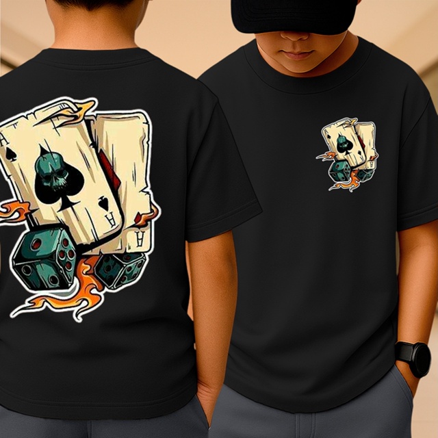 Camiseta Baralho Infantil Manga Curta Camisa Estampada Desenho Colorido para Meninos 100% Algodão