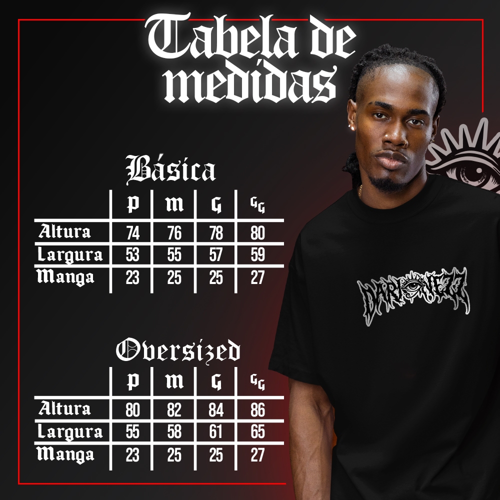 Camiseta Basica e OVERSIZED Choso Mark Blood Manipulation Jujutsu Kaisen Anime Unissex - Darknezz Marcas acima da camiseta somente ilustrativas, para evitar comercialização de nossas artes. Saudações, viajante! Seja bem-vindo à nossa modesta tenda virtual! Esperamos sinceramente que desfrute da sua estada aqui e encontre encanto nos tesouros que oferecemos. Trabalhamos arduamente a cada dia com esmero e paixão, buscando trazer até vós o mais primoroso produto do mercado, com justo preço, qualidade indubitável, cortesia sem igual no atendimento, e, sobretudo, respeito ao prazo de envio, assegurando que vossa compra chegue a tempo e antes do combinado. Eis alguns detalhes que vos possam interessar: Horário de atendimento: De Segunda a Sexta-Feira: das 06h as 17h. Respondemos às vossas mensagens por ordem de recebimento! Assim que despachada, será enviado o código de rastreio; Salvo alguma interferência das mensageiras do reino, vosso pedido será entregue sempre antes do prazo estipulado. DETALHES DA CAMISETA: Modelo: Camiseta Tradicional (unissex) Disponível nos Tamanhos: P, M, G, GG Estampa: Magia de longa duração; Modelo: Camiseta OVERSIZED (unissex) Disponível nos Tamanhos: P, M, G, GG Modelo: Camiseta Infantil Disponível nos Tamanhos: 06, 08, 10, 12, 14, 16 CUIDADOS COM O PRODUTO: Lave com a estampa virada para dentro, evitando dobras Abstenha-se de usar substâncias abrasivas, água fervente ou ciclo agressivo na lavagem Prefira água fria e evite deixar de molho Seque à sombra após a lavagem Nunca passe ferro diretamente sobre a estampa Ao passar, faça-o pelo avesso e com uma proteção entre o ferro e a camiseta. PERGUNTAS FREQUENTES: O produto é novo? Sim. Todos nossos tesouros são novos. As camisetas são confeccionadas sob demanda, garantindo a frescura de um novo encantamento