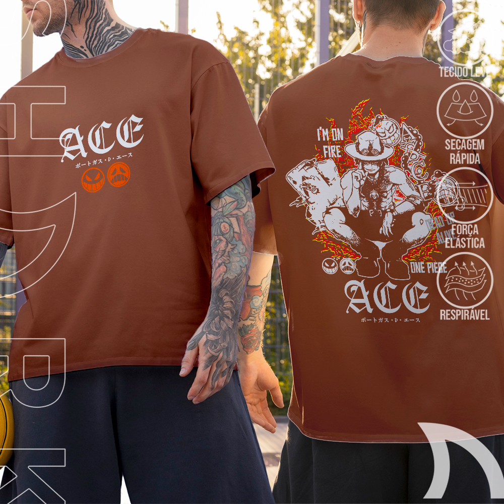 Camiseta Basica e OVERSIZED Portgas D Ace Asce I'm On Fire One Piece Capitao Barba Branca Unissex