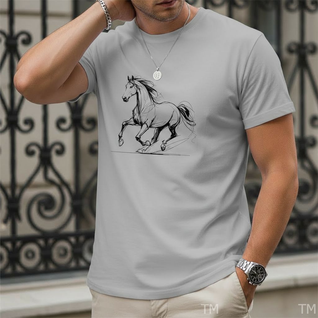 Camiseta Básica Estilosa Masculina Estampada Cavalo Street Malha Respirável Academia