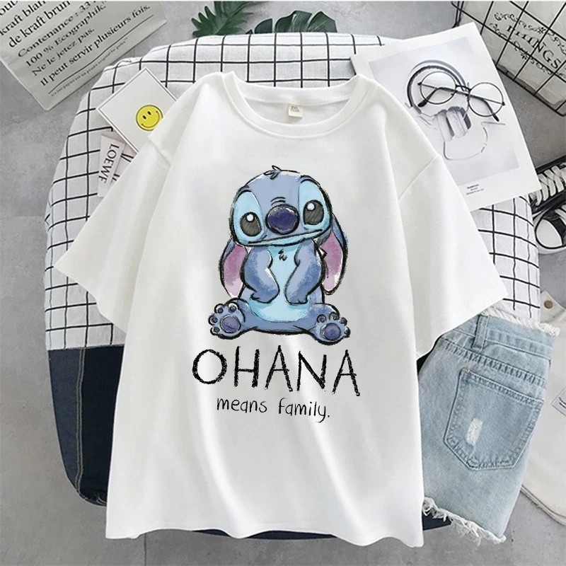 Camiseta Básica Feminina Stitch Ohana Família Fofo Moda Aesthetic camisa stitch