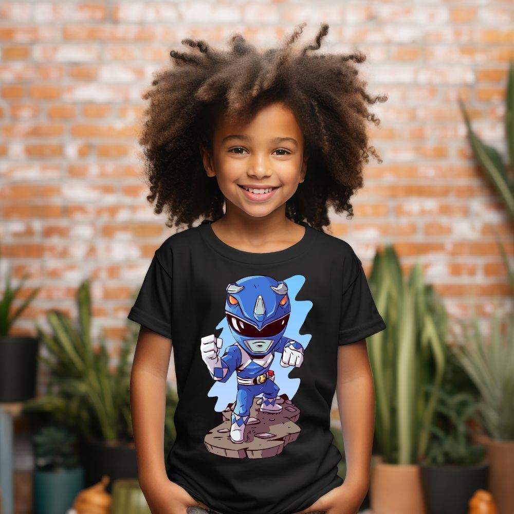 Camiseta Básica Infantil Power Rangers Azul Personagens Desenho Animado