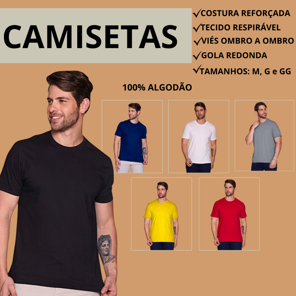 Camiseta confeccionada em 100% algodão, com um caimento reto e acabamento reforçado tendo um vies de ombro a ombro para maior durabilidade da peça, com gola redonda para te dar conforto, essa modelagem ampla e de mangas curtas é execelente e uma peça corringa. Peça básica para usar em diversas ocasiões, peças de qualidade e com boa durabilidade! Nosso tecido é 100 % algodão – 30.1 Penteada, não encolhe e não estica!!!