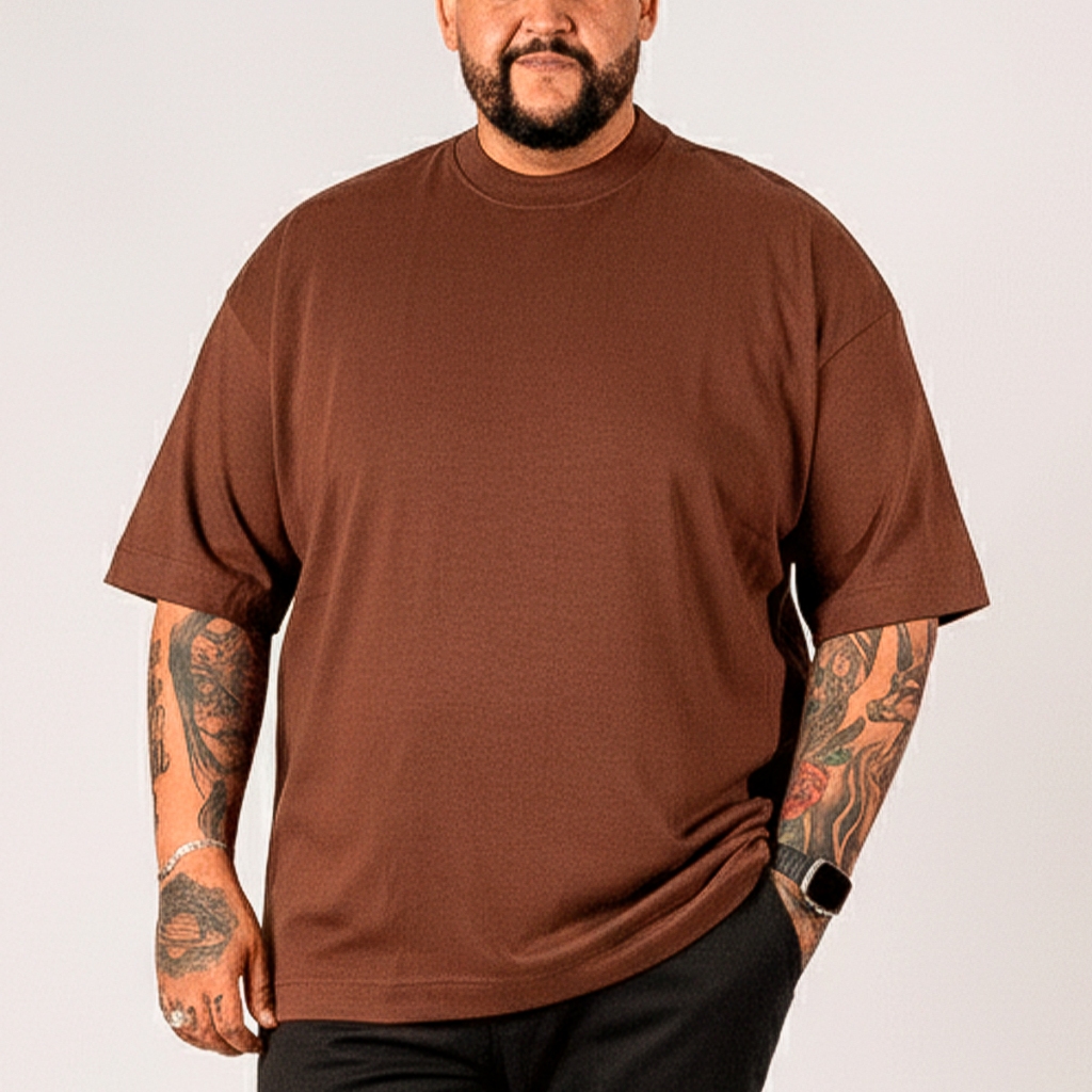 Camiseta Basica Plus Size Oversized Tecido Pesado Gola Canelada 100% Algodão Não Marca o Corpo