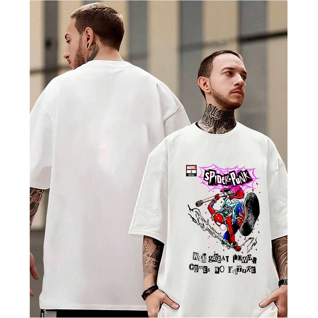 Camiseta Básica Spider Punk Homem-Aranha Inspirada no Aranhaverso Estilo Casual Unissex