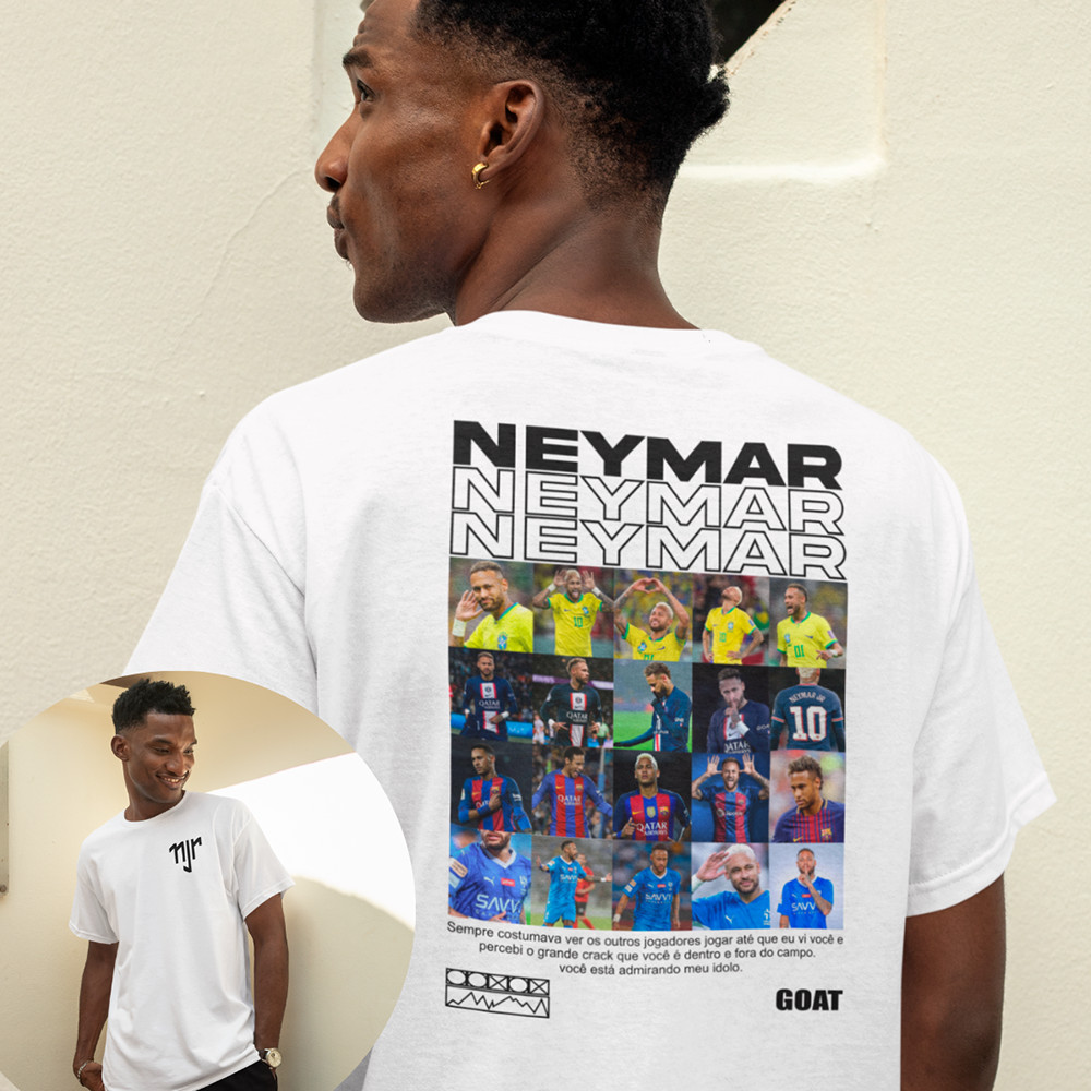 Camiseta Básica Unissex Futebol Neymar Junior Jogador Seleção Brasileirão Goat Ídolo Brasil