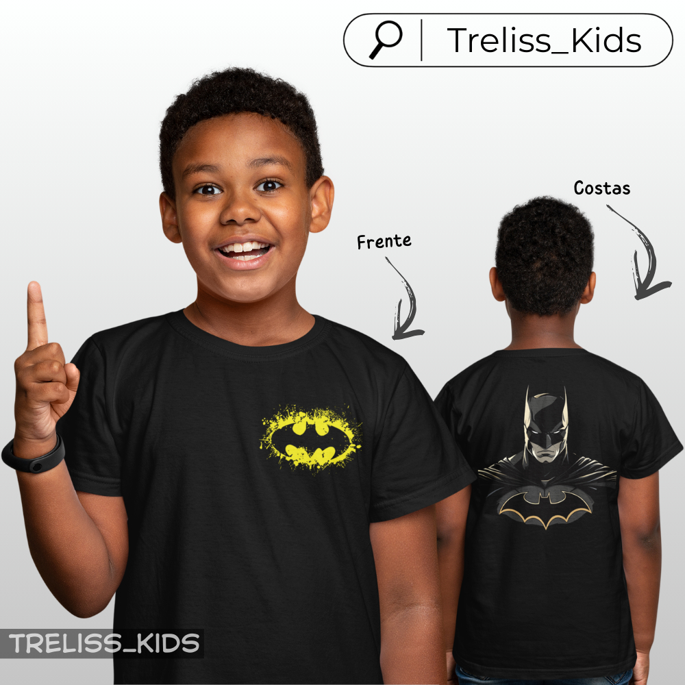 Camiseta Batman Infantil Algodão 100% Frente e Costas Menino