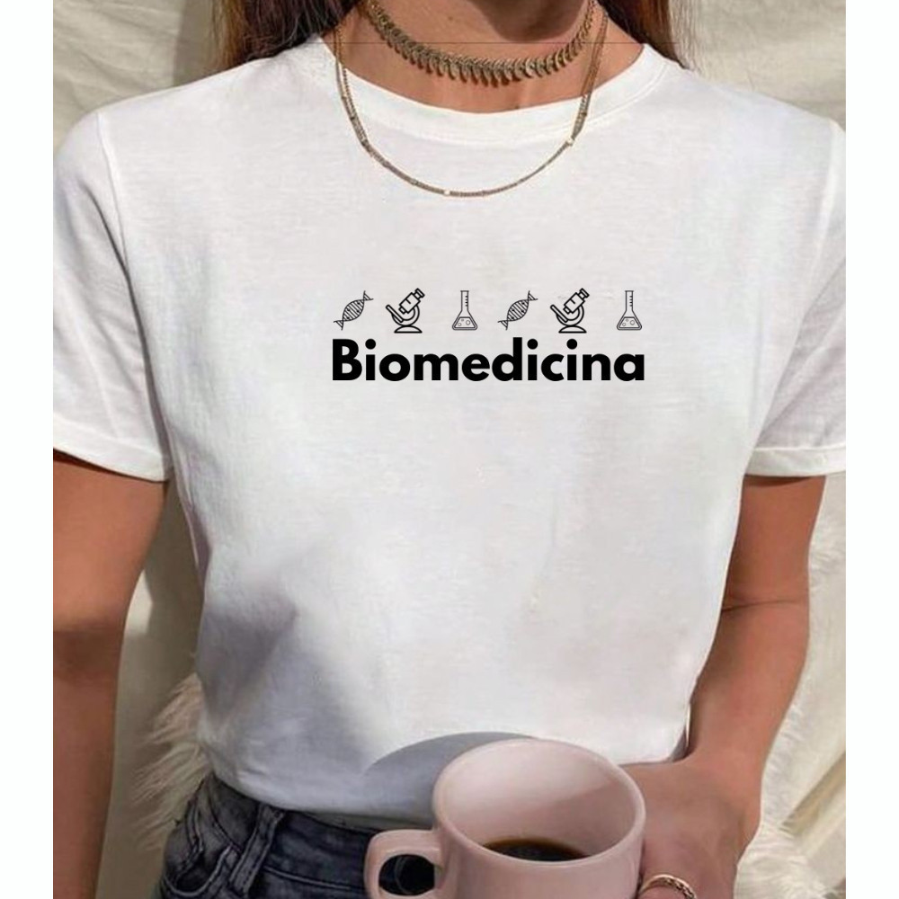 Camiseta Blusa Feminina Biomedicina 100% Algodão Estampada Biomédica