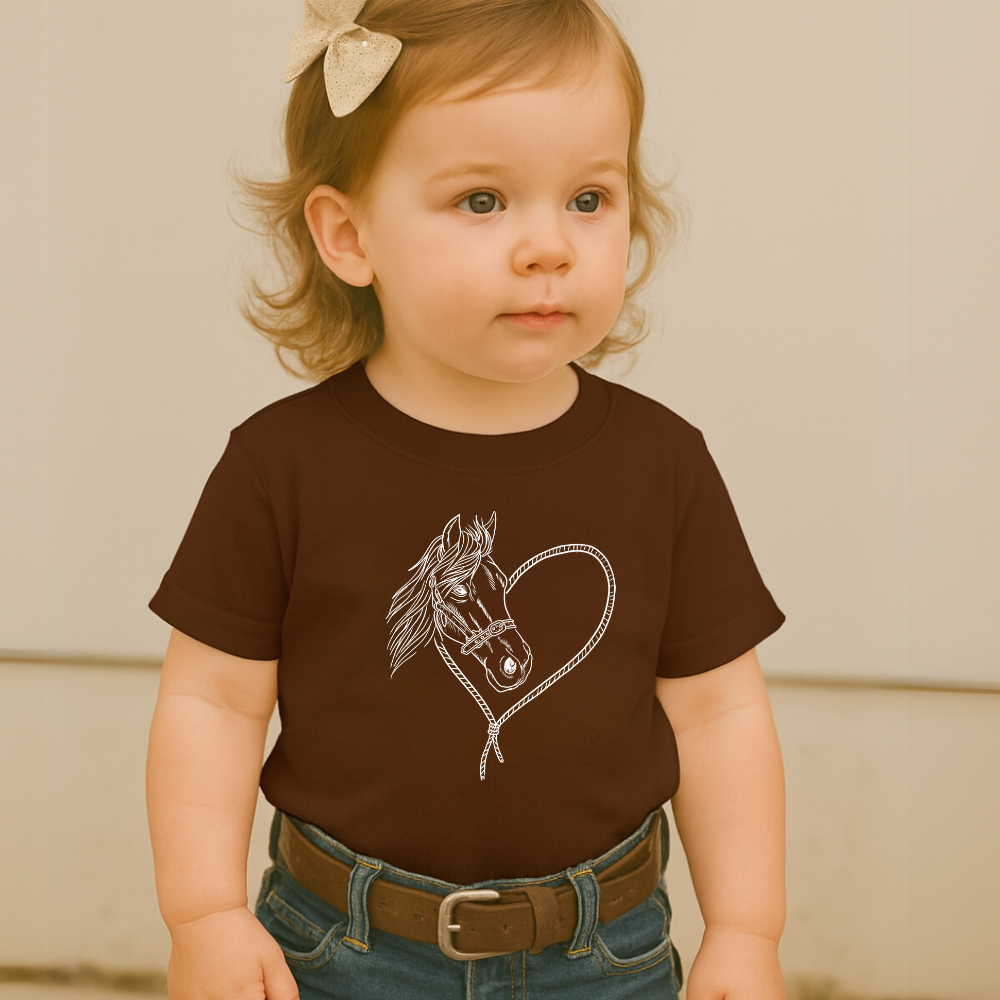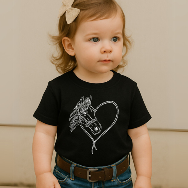 Camiseta Blusa Infantil Modinha Estampa Cavalo Coração Lindo Fofo Amor Carinho Country Menina Cowirl