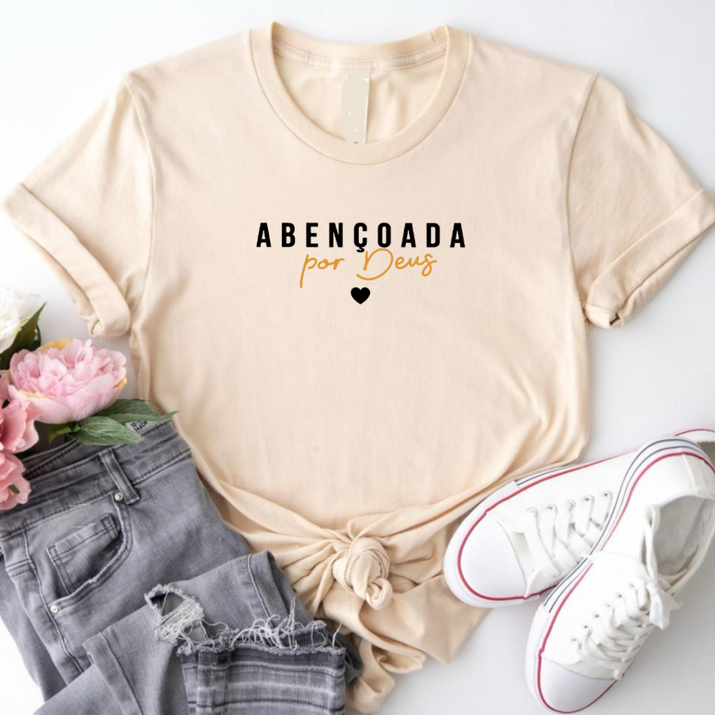Camiseta Blusa T-Shirt Feminina Cristã Abençoada Por Deus