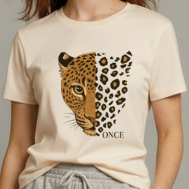 Camiseta Blusinha Feminina 100% Algodão com Estampa Onça Once Animal Print