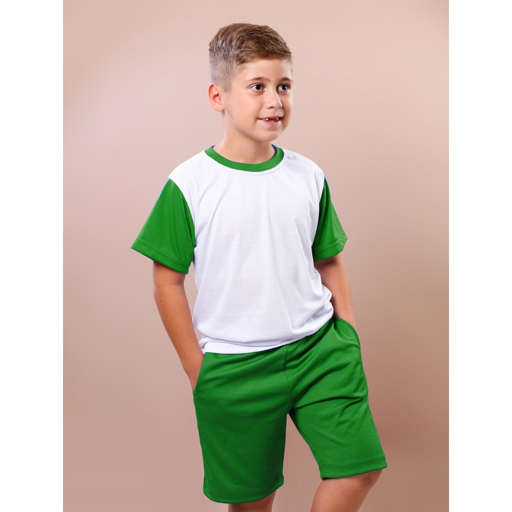 Camiseta branca Infantil para uniforme escolar com mangas coloridas