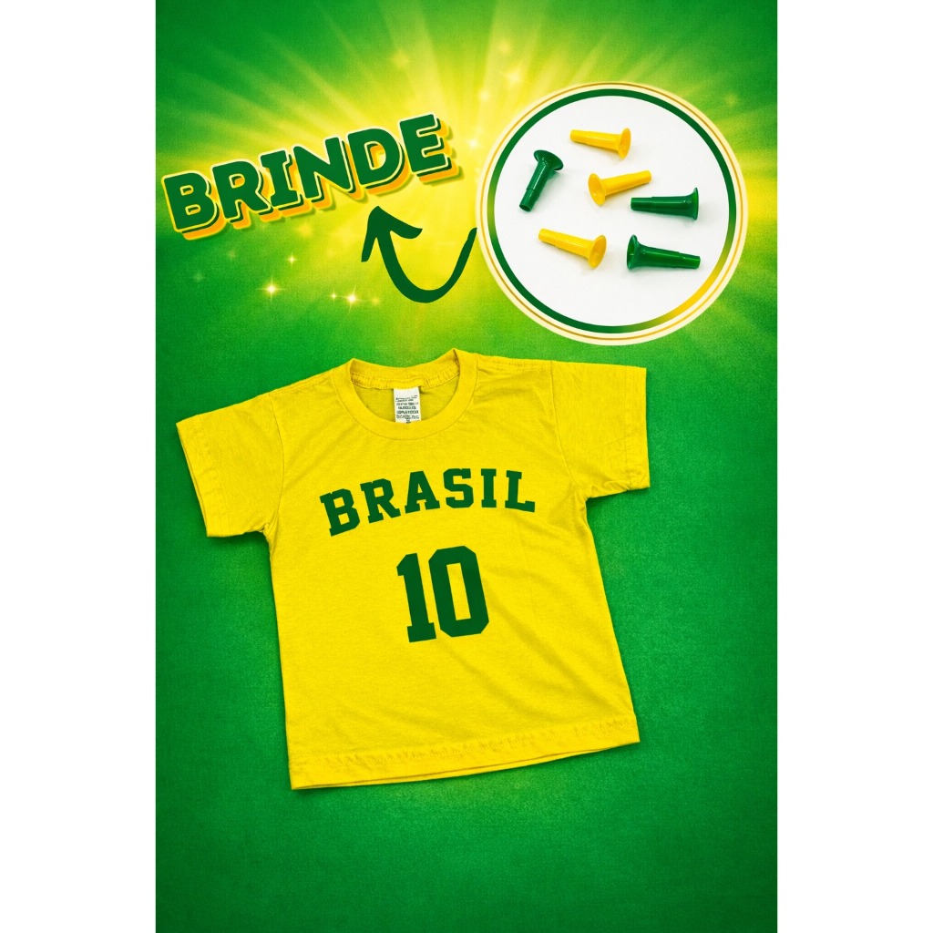Camiseta Brasil Infantil Copa Do Mundo Unissex Futebol + Brinde