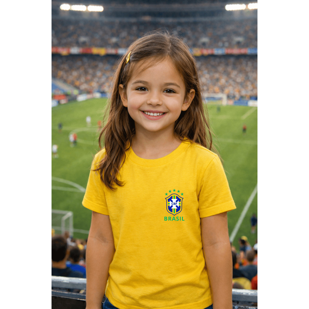 Camiseta Brasil Infantil Unissex Seleção Brasileira Copa do Mundo 2026 100% Algodão