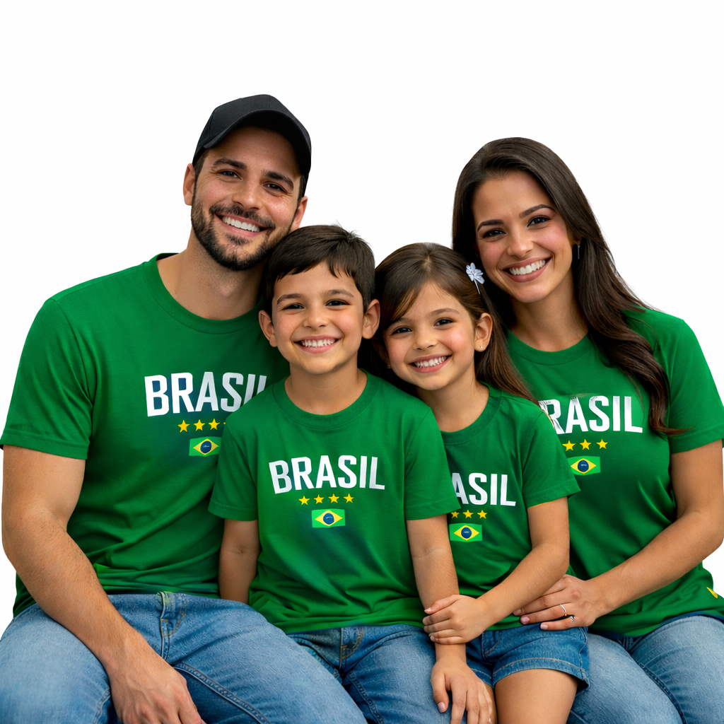 Mostre o orgulho de ser brasileiro com estilo! O Kit Família Brasil é perfeito para torcer junto, sair em família, assistir jogos, Copa do Mundo, eventos esportivos ou até para fotos especiais. 👕 Características do produto ✔ Estampa BRASIL com bandeira ✔ Camisetas para toda a família ✔ Modelos masculino, feminino e infantil ✔ Tecido confortável e leve ✔ Ideal para torcer pelo Brasil com a família 🎨 Cores disponíveis 💙 Azul 💚 Verde 💛 Amarela 📏 Tamanhos disponíveis Adulto: P / M / G / GG Infantil: 2 / 4 / 6 / 8 / 10 / 12 🧵 Material Tecido confortável, respirável e resistente, ideal para o dia a dia. 👨👩👧👦 Perfeito para: ⚽ Jogos da seleção 🎉 Eventos e festas 📸 Fotos em família 🎁 Presentear 🇧🇷 Mostrar o orgulho do Brasil ⭐ Monte seu kit família e torça junto pelo Brasil