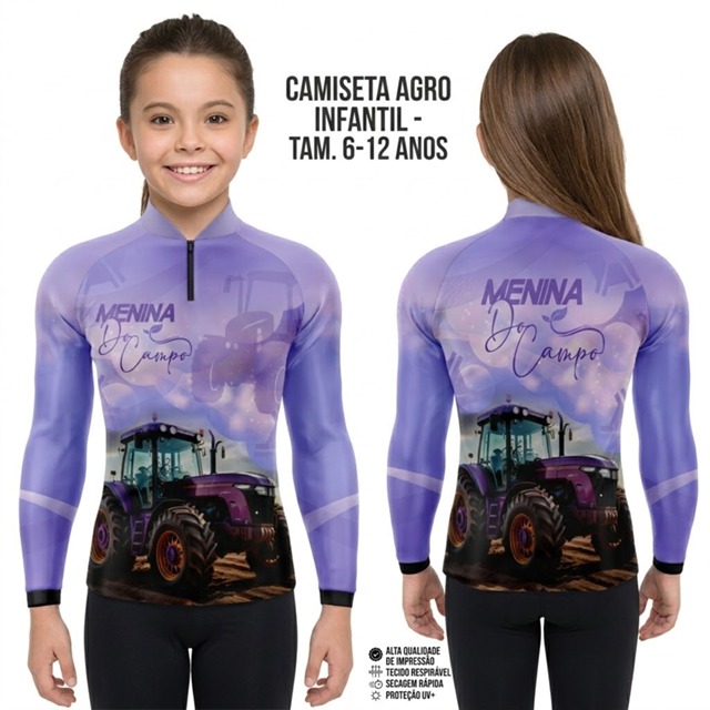 🚜 Camiseta Agro Infantil, Menina do Campo: Estilo, Proteção e a Força do Campo (SK) O pequeno produtor merece o melhor traje para as grandes aventuras! A nossa linha de camisetas infantis "Menina do Campo" e "Agro" une a tecnologia do esporte com a tradição da agricultura. Desenvolvida para crianças de 6 a 14 anos, ela oferece o máximo de conforto para o dia a dia, eventos do setor ou para acompanhar a família na lida. ✅ Diferenciais de Estilo e Conforto: Modelagem Raglan: Design moderno que garante total liberdade de movimento. Punhos Anatômicos: Ajuste perfeito nos braços, mantendo as mangas no lugar com conforto. Gola Padre com Zíper: Visual elegante e funcional, com abertura de 12cm para facilitar o vestir. Estampa Sublimada Premium: Cores vivas que não desbotam e detalhes em alta definição que exaltam o agro. Costura Reforçada: Feita para aguentar a energia da criançada sem descosturar. 🛡️ Proteção Inteligente (Tecnologia Dry): Não é apenas uma camiseta, é uma camada de proteção para o seu filho(a): Proteção UV+: Barreira real contra os raios solares durante atividades ao ar livre. Ação Antimicrobiana: Tecido 100% poliéster que evita odores e proliferação de bactérias. Dry Tech: Secagem ultra rápida e controle de umidade (suor sai, o conforto fica). Escudo de Proteção: Ajuda a prevenir arranhões de folhagens e protege contra insetos. 📏 Tabela de Medidas (Ajuste Perfeito) 📏 TABELA DE MEDIDAS (INFANTIL) TAMANHO | PEITO | COMPRIMENTO | MANGA TAM 06: 34 cm 46 cm 51 cm TAM 08: 36 cm 49 cm 56 cm TAM 10: 38 cm 52 cm 60 cm TAM 12: 40 cm 54 cm 64 cm TAM 14: 43 cm 58 cm 68 cm Dica: Compare as medidas com uma peça que a criança já usa. Confira as medidas antes de comprar para garantir o caimento ideal: "Qualidade Premium SK: A camisa que não desbota e aguenta o dia a dia da lida! 🧱✨ Garanta a unidade do seu pequeno produtor hoje mesmo e receba em casa! "
