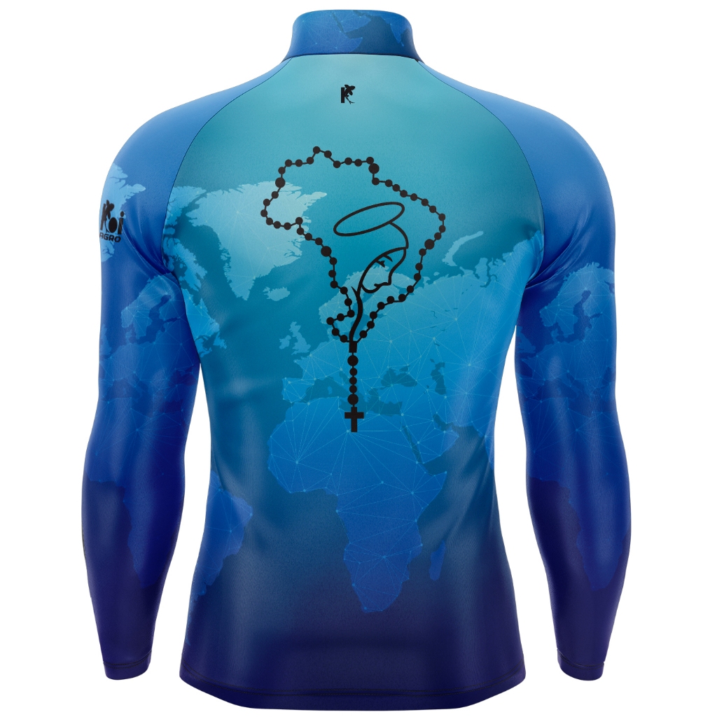 Camiseta Camisa Blusa Agro Pesca Religiosa Nossa Senhora Aparecida Com Zíper Proteção Uv50+