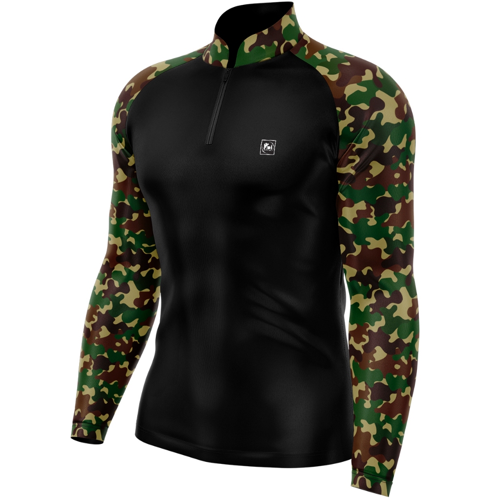 Camiseta Camisa Blusa Casual Pesca Agro Militar Camuflado Com Zíper Proteção Uv50+