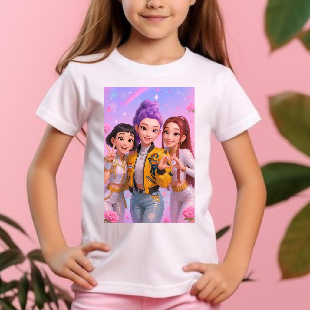 CAMISETA CAMISA BLUSA DESENHO ANIMADO TENDÊNCIA EM ALTA GUERREIRAS DO K-POP INFANTIL JUVENIL