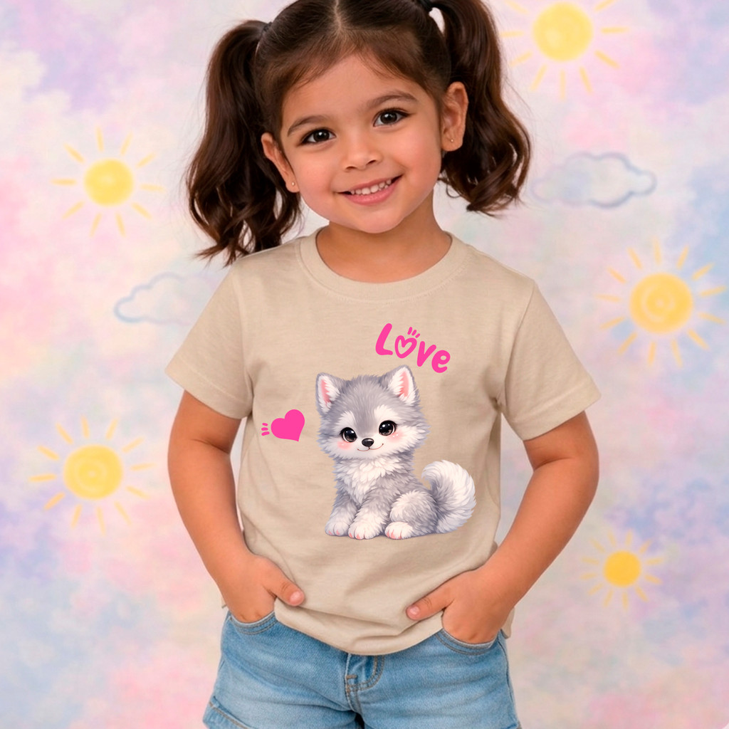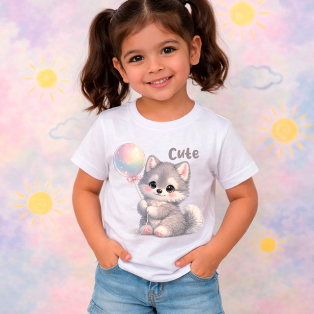 Camiseta Camisa Blusa infantil Menina Estampa Desenho cachorrinho Lobinho Cute Kawai Promoção 100% Algodão