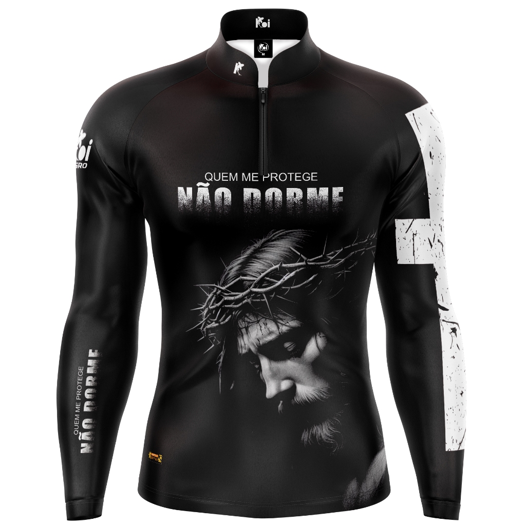 Camiseta Camisa Blusa Religiosa Jesus Quem me protege não Dorme Com Zíper Proteção Uv50+