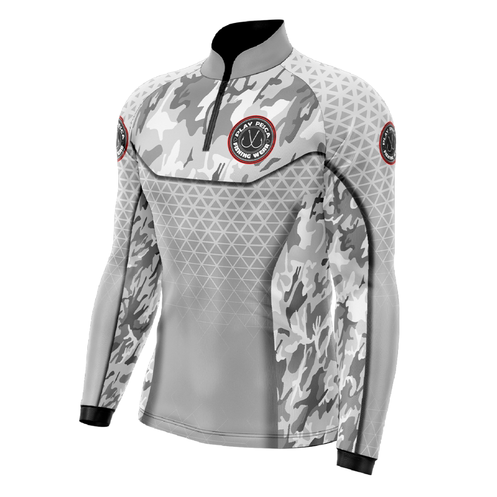 Camiseta Camisa Camuflada Branca e Cinza Play com Proteção Solar Uv50+ Cammo White