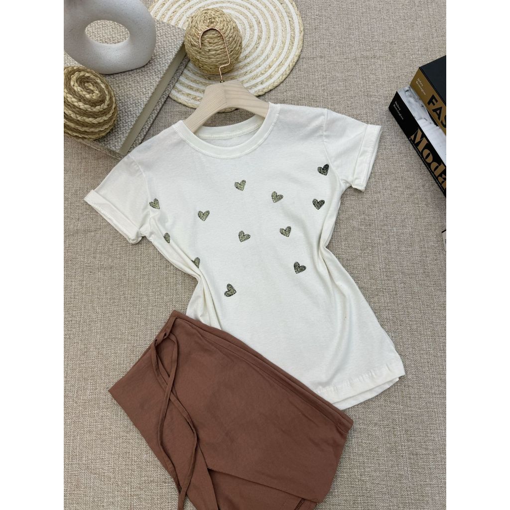 Camiseta camiseta feminina manga curta algodão 100% Gola careca sempre com estampa Coração!!!