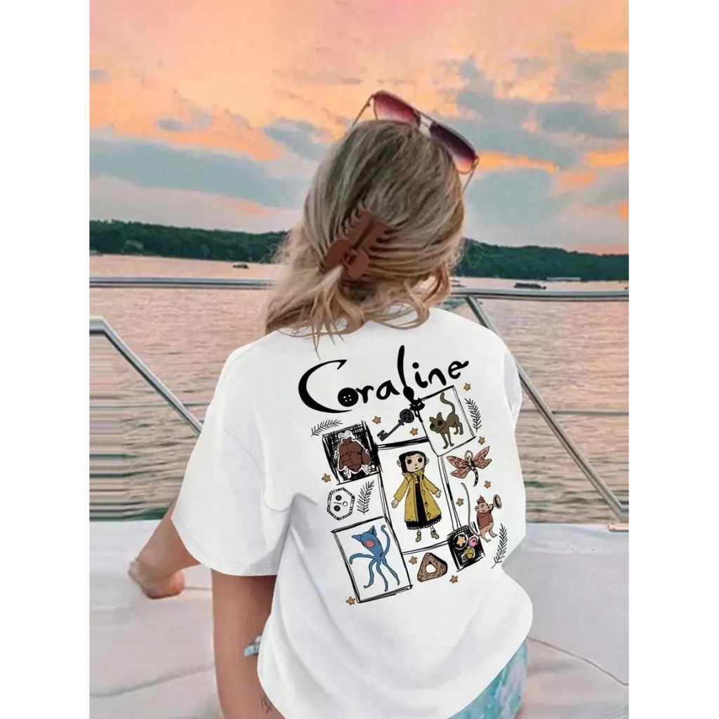 Camiseta Casual de Manga Curta Estampada Preta para Meninas e Adolescentes Estudantes, Top de Verão