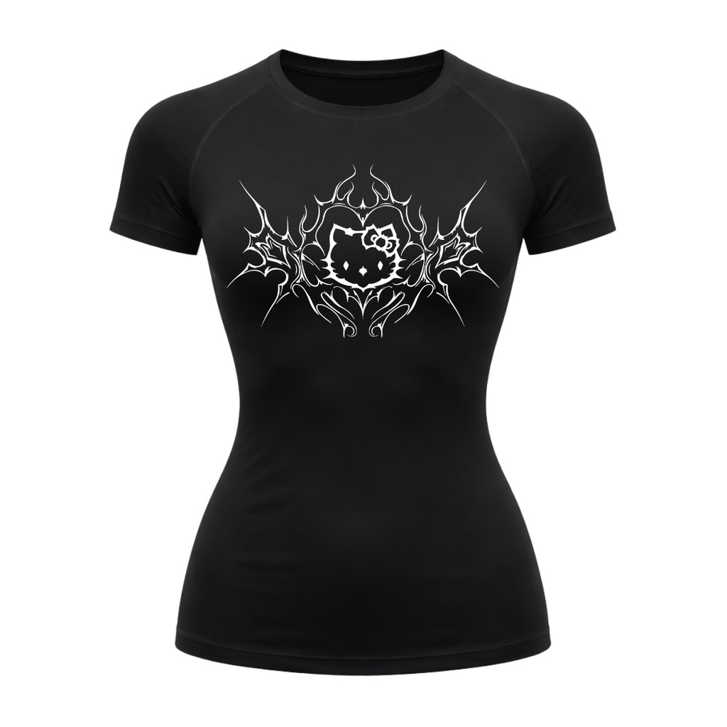 Camiseta Compressão Uv Manga Curta Cyber Tribal Black Heart Hello Kitty Rash Guard