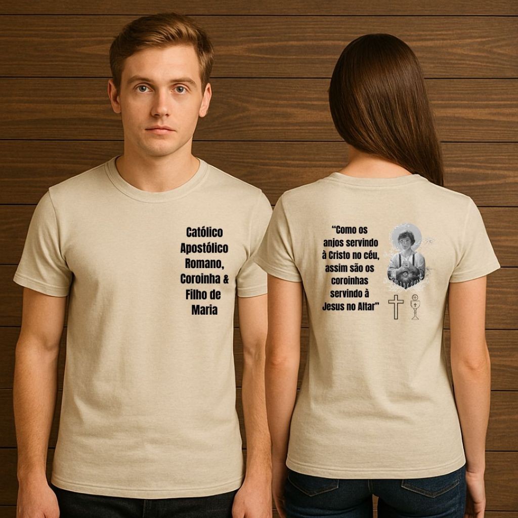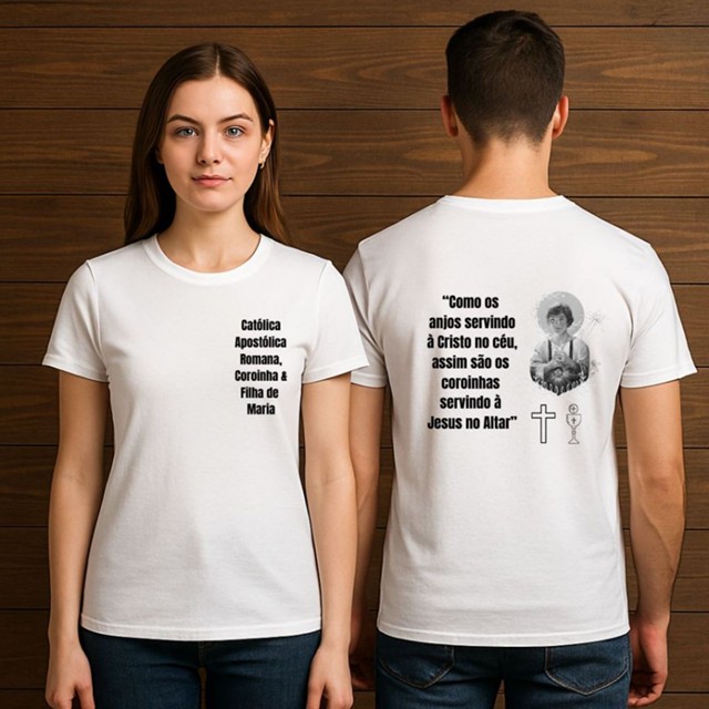 Camiseta Coroinha São Tarcísio -Menina ou Menino - Frente e Verso - Excluiva - Algodão